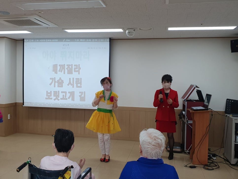어버이날 행사 실시 작성자관리자 등록일 25-05-21 조회423회 본문 일시 : 2023.05.08(월)장소 : 5층 다목적 실높음음자리 공연단이 어버이날 공연을 와주셨습니다. 어버이날을 축하드리며 불러주시는 노래소리에 울고 웃고 떠드는 시간을 가집니다. 코로나19 예방을 위해 마스크 착용과 거리를 두며 프로그램을 실시하였습니다. 어버이날 주일예배 감미화 미용학원 이미용 목록
